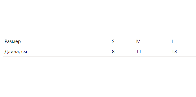 • размеры: S - 8 см, M - 11 см, L - 13 см.