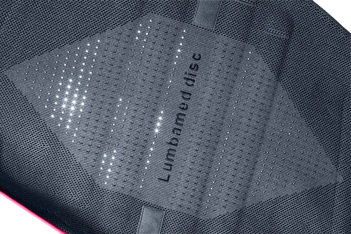 Благодаря специальной технологии вязки изделие повторяет особенности строения фигуры и идеально прилегает к телу, что необходимо для оптимального компрессионного воздействия. При этом использование бандажа отличается высоким комфортом, ведь его края не врезаются в кожу. Уникальные дышащие материалы, использованные при создании манжеты, обеспечивают оптимальный температурный режим в любое время года. Кроме того, в ткань внедрены ионы серебра, которые обеспечивают бактериостатический эффект, то есть негативно влияют на рост бактерий и тем самым препятствуют образованию неприятного запаха. Противоупор на внешней стороне изделия помогает устранить мышечный спазм и способствует выпрямлению гиперлордоза. По мере уменьшения болевого синдрома бандаж можно использовать без противоупора. Пружинящие рёбра жёсткости из специального сплава моделируются в соответствии с индивидуальными особенностями. Для простоты надевания в бандаже предусмотрены петли для рук.