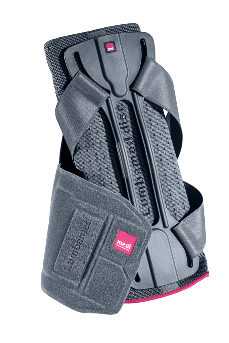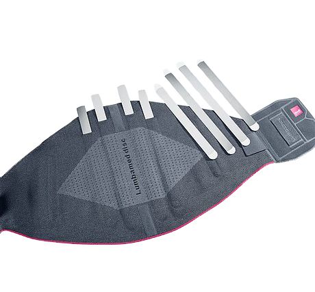 Поясничный бандаж-корсет LUMBAMED DISC оказывает эффективную помощь при лечении грыжи межпозвонкового диска и других заболеваниях поясничного отдела позвоночника. Компрессия вязанной манжеты улучшает кровообращение и питание тканей, что уменьшает отек и связанный с ним болевой синдром. Модульный дизайн (противоупор и ребра жесткости двух степеней жесткости) позволяет менять степень стабилизации в соответствии с этапом лечения. Рёбра жёсткости стабилизируют позвоночник, ограничивая болезненную подвижность поясничного отдела позвоночника, что уменьшает интенсивность болевого синдрома (возможен заказ дополнительного комплекта пластин с большей степенью подвижности для использования бандажа вне обострения).