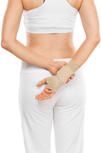 • шина и широкий ремень ограничивают движения в лучезапястном суставе, что уменьшает болезненность, так как связки сустава не подвергаются выраженному натяжению