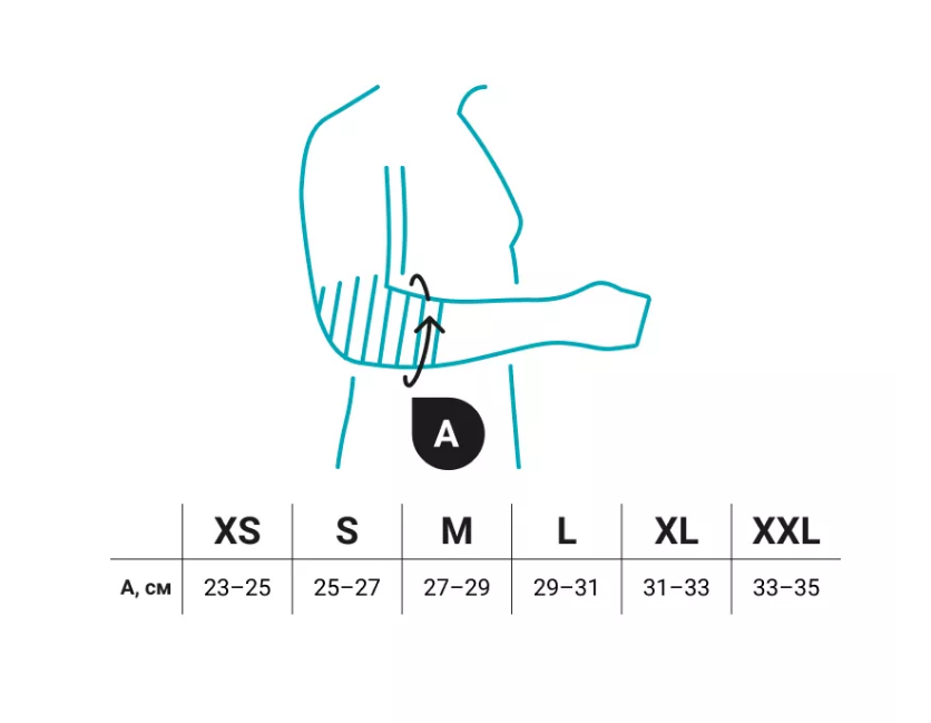 Чтобы правильно определить размер, необходимо измерить окружность предплечья в самой широкой его части.