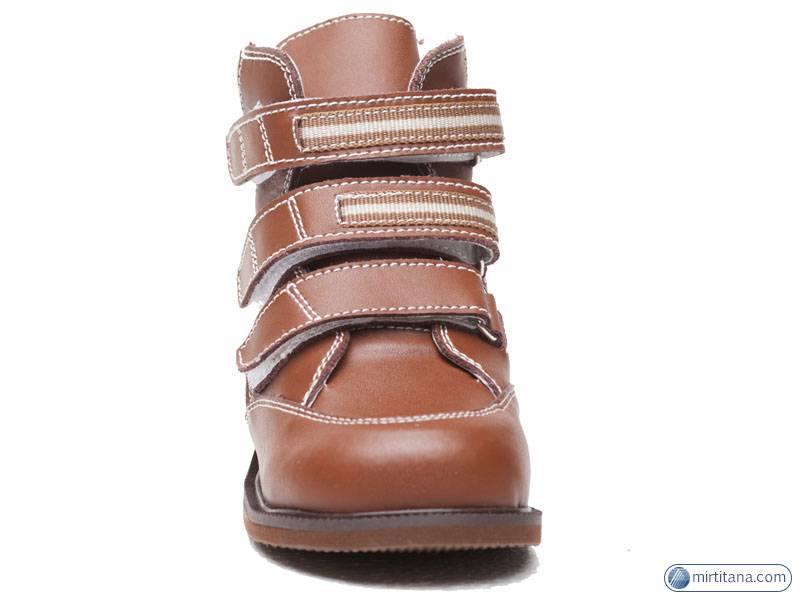 Верх из натуральной кожи, подкладка из натуральной кожи, подошва из EVА со вставками из пористой резины, застежка: тройная липучка, цвет: коричневый/бежевый, размеры: 19-35.