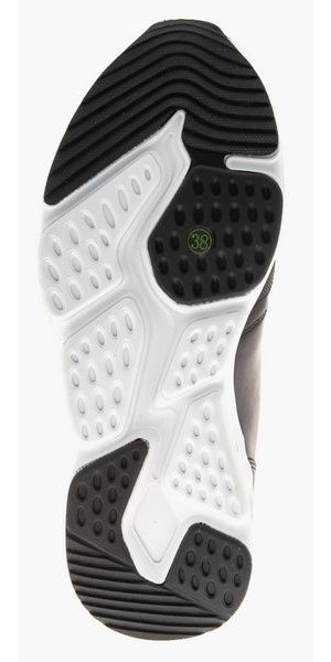 - Нескользящая подошва из полиуретана цельнолитого типа обеспечена небольшим подъемом в области пятки.