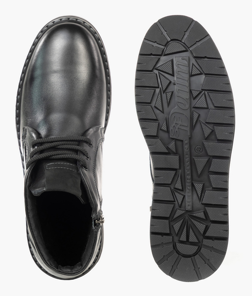 Плотный формоустойчивый задник фиксирует пятку, обеспечивая физиологичное положение стопы и устойчивую походку.Теплая демисезонная модель выполнена из натуральной кожи, создает актуальный вид и прекрасно подходит для прохладной погоды. Внутренняя подкладка -байка. Модель имеет вкладную анатомическую стельку с комфортным абсорбирующим покрытием из микрофибры.  Эластичная амортизирующая подошва из резины с нескользящим протектором поглощает ударные нагрузки. Шнуровка позволяет корректно отрегулировать посадку обуви по подъему стопы. Дополнительно модель оснащена боковой молнией для упрощения надевания.