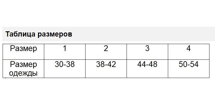 размер одежды   30-38  38-42  44-48  50-54