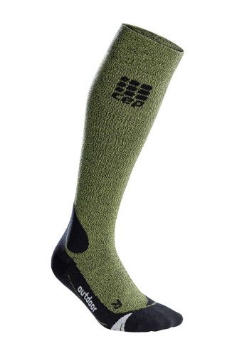 Компрессионные женские гольфы CEP с шерстью мериноса для улучшения тонуса мышц и поддержания здоровья вен во время активного отдыха на природе.