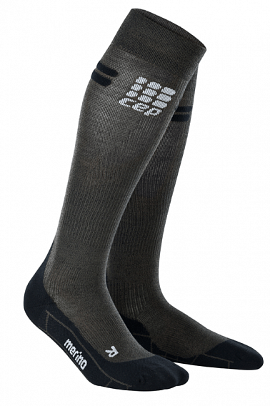 Компрессионные гольфы CEP с шерстью мериноса для поддержки тонуса мышц и здоровья вен во время занятий бегом.