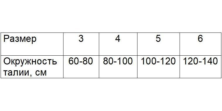Обхват талии, см 60-80 80-100 100-120 120-140