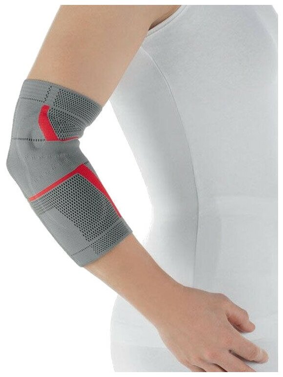 Эластичный трикотажный локтевой бандаж с внутренними силиконовыми пелотами. Обладает выраженным противоотечным действием и антибактериальными свойствами.