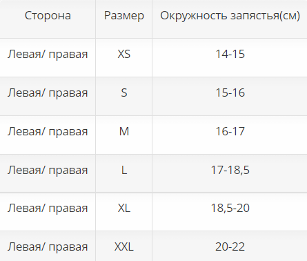 Подбор размера лучезапястного ортеза: