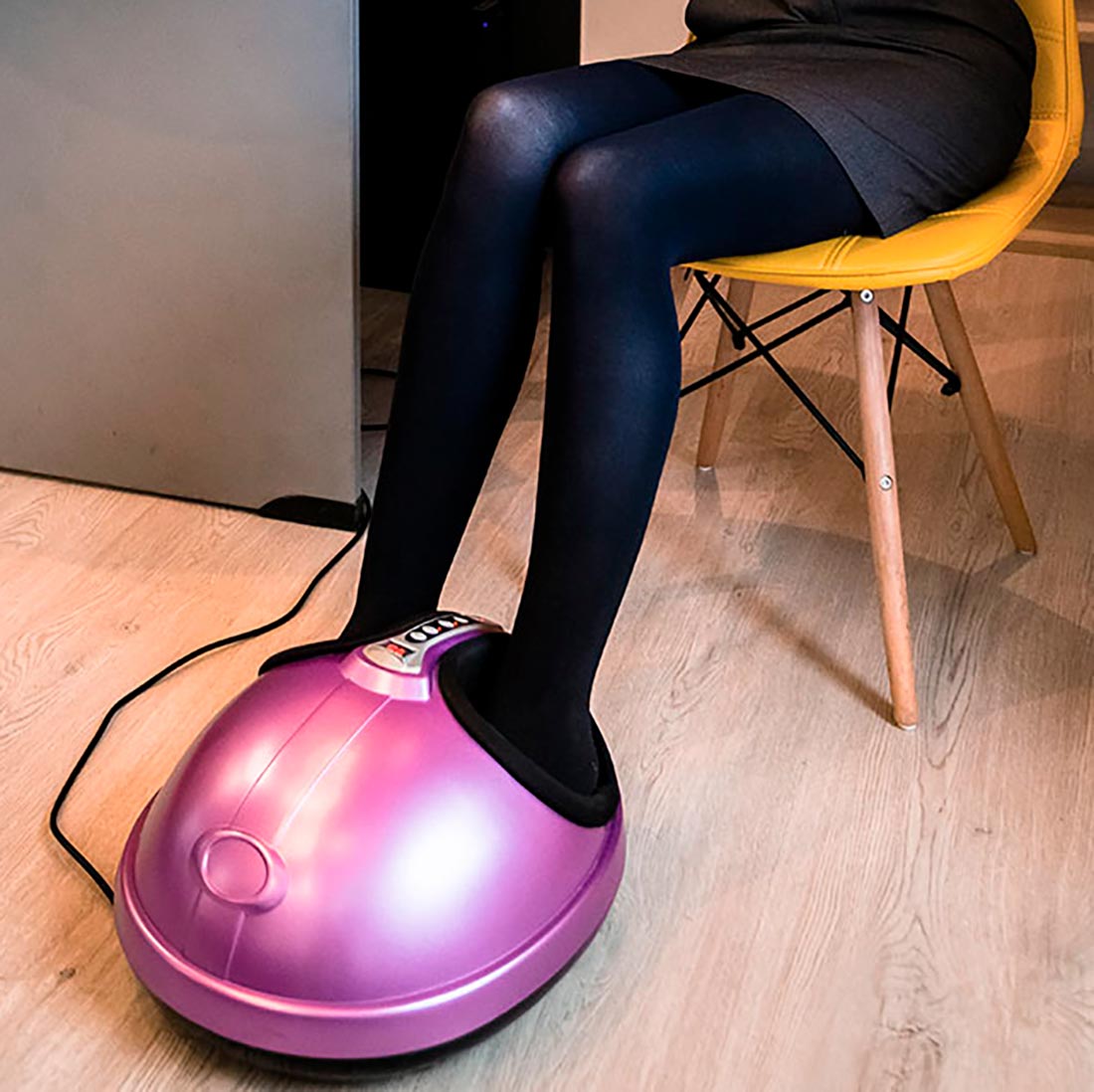 Массажер для ног оказывает комплексное массажное воздействие на стопы, расслабляет, снимает напряжение и избавляет от усталости. Принцип работы массажера основан на встроенных массажных роликах, акупунктурных пластинах и воздушно-компрессионных подушках.