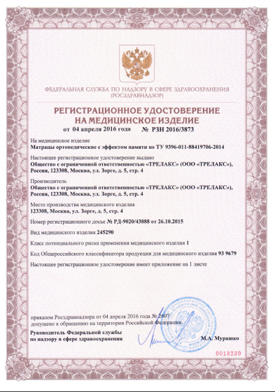 В результате сна на ортопедическом матрасе TRELAX с эффектом памяти достигается комплексное воздействие на позвоночник: эффективная разгрузка, нормализация тонуса мышц, уменьшение боли и улучшение качества сна. Имеет клинически доказанную эффективность!
