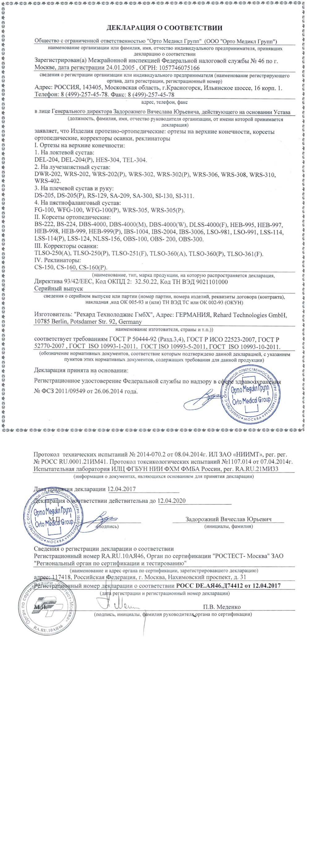 Согласно полученным результатом подобрать ортез Orlett по таблице подбора размеров: