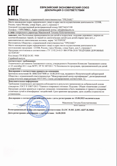 Подушка А301 детская дорожная от 0 до 2 лет autofox Trelax