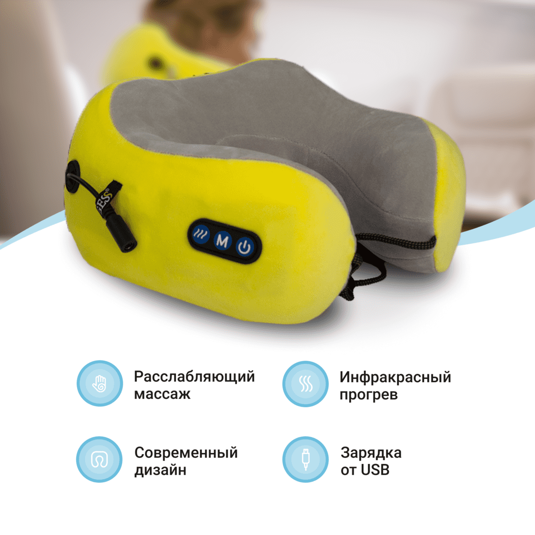 Подушка для путешествий uTravel GESS-136, массажная подушка, рпрогрев, yellow