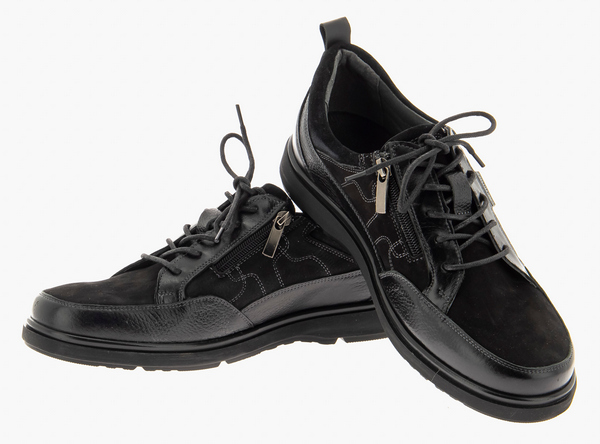 Мужские демисезонные полуботинки из натуральной кожи. Объем верха регулируется шнуровкой и молнией. Материал подошвы создает дополнительную амортизацию при ходьбе.