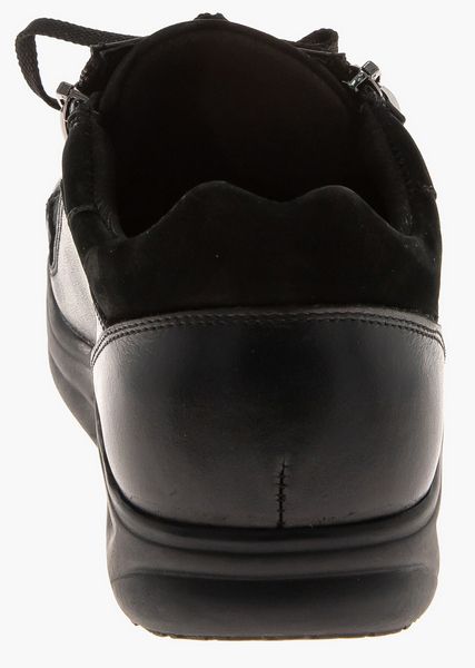 Полуботинок снабжен несколько большей чем обычно уплотненной задней частью, сформированной из термопласта. Она позволяет надежно фиксировать пяточную область в естественном положении, к тому же задник держит форму достаточно долгое время. Изнутри ботинки достаточно широки, а вставка из трикотажа отлично растягивается, что позволяет добавить в обувь орто-стельку, индивидуально изготовленную.