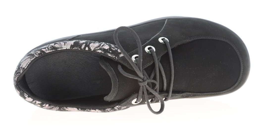 Полуботинок снабжен несколько большей чем обычно уплотненной задней частью, сформированной из термопласта. Она позволяет надежно фиксировать пяточную область в естественном положении, к тому же задник держит форму достаточно долгое время. Изнутри ботинки достаточно широки, а вставка из трикотажа отлично растягивается, что позволяет добавить в обувь орто-стельку, индивидуально изготовленную.