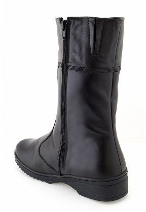Лечебную обувь снабжают более плотным задником, имеющим специальную форму, его производят из термопласта. Уплотненная задняя часть не меняет форму даже спустя длительное время, что дает возможность надежно фиксировать пятку в естественным положении. В комплекте к таким сапогам предлагают стельку анатомического типа, она мягкая и ее можно вынимать.