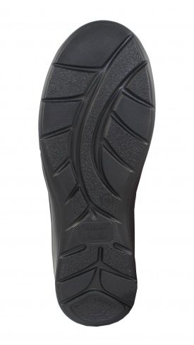 - Нескользящая подошва из полиуретана цельнолитого типа обеспечена небольшим подъемом в области пятки.