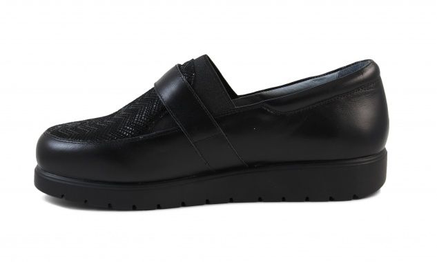 Полуботинок снабжен несколько большей чем обычно уплотненной задней частью, сформированной из термопласта. Она позволяет надежно фиксировать пяточную область в естественном положении, к тому же задник держит форму достаточно долгое время. Изнутри ботинки достаточно широки, а вставка из трикотажа отлично растягивается, что позволяет добавить в обувь орто-стельку, индивидуально изготовленную.