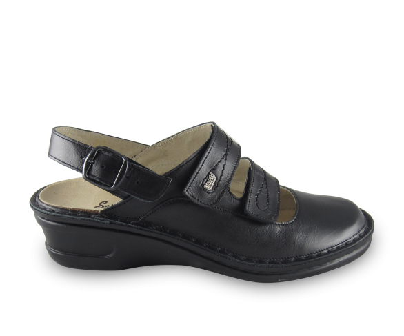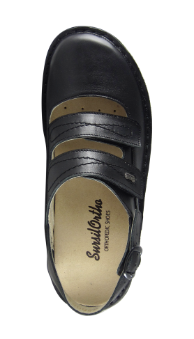 Туфли ортопедические черные, женские 25605-2 Sursil-Ortho имеют комфортную орто-стельку. Она сделана из коры пробкового дерева. Такую обувь нужно использовать женщинам, у которых передний отдел стопы деформирован, то есть при вальгусной деформации первого пальца, либо при молоткообразной деформации.