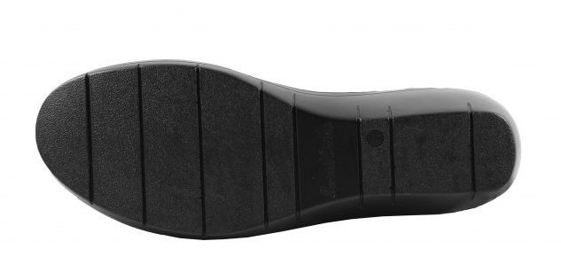 - Нескользящая подошва из полиуретана цельнолитого типа обеспечена небольшим подъемом в области пятки.